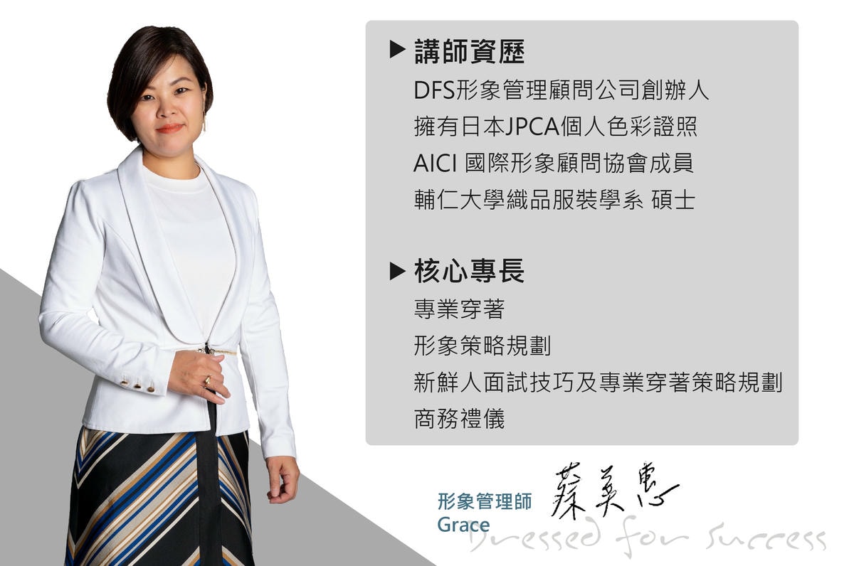 DFS除了提供到府衣櫃整理的服務之外,他們也開立許多形象打造的相關課程。並且集結了台灣頂尖的形象顧問團隊,與設計師、時尚品牌、美髮師、彩妝師、專業講師等的合作,由外而內的 Renew,打造專業形象課程,專為個人、企業量身打造最佳形象。