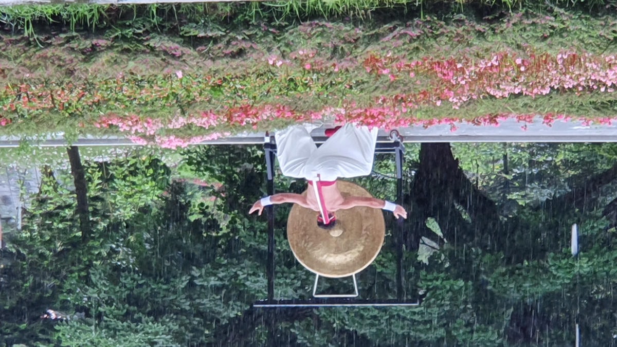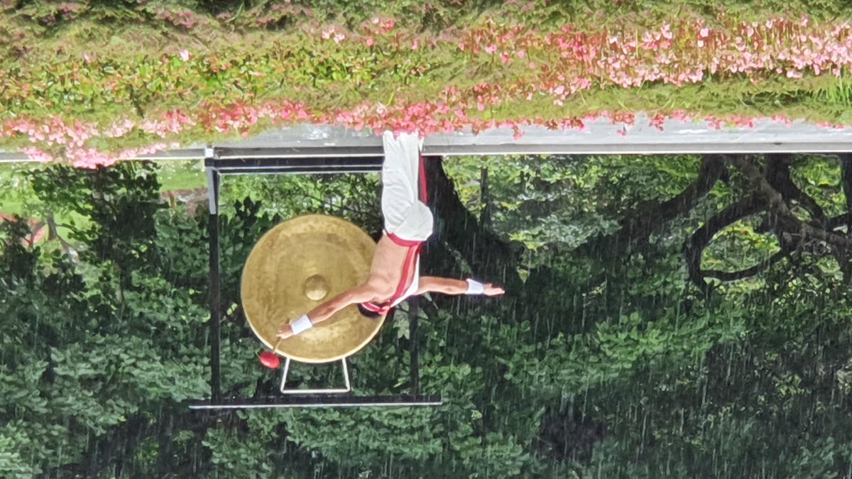 園區還有精彩的十鼓表演,當天戶外下著大雨,看著精壯的表演者在雨中揮動鼓棒,展現力與美的精采結合,頗令人震撼和感動。